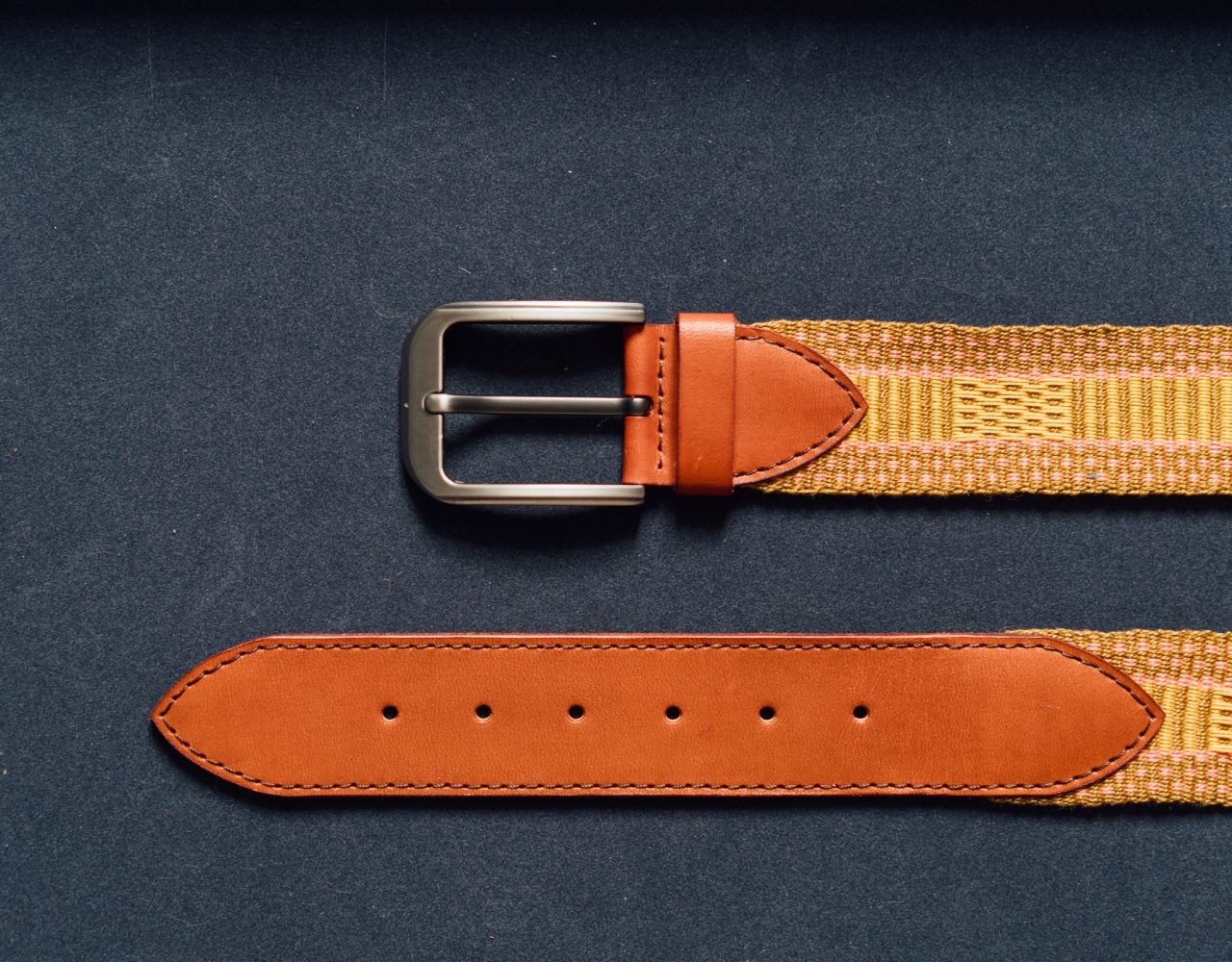 This beautifully crafted handmade cotton belt features a striking design with a rich olive and a vibrant yellow stripe, which adds a touch elegance in every outfit. With a length of 105 cm and a width of 3.8 cm and a length of 104 cm and a width of 3.8 cm wide, it is the perfect accessory for both casual and formal occasions. The pink ones colors woven together create a warm and attractive aesthetic, while the combination of a robust leather lining and an elegant silver buckle ensures durability and style. Whether you are dressing up for a special event or simply want to elevate your everyday look, this belt is a versatile one addition to your wardrobe that showcases his craftsmanship and talent handmade.
