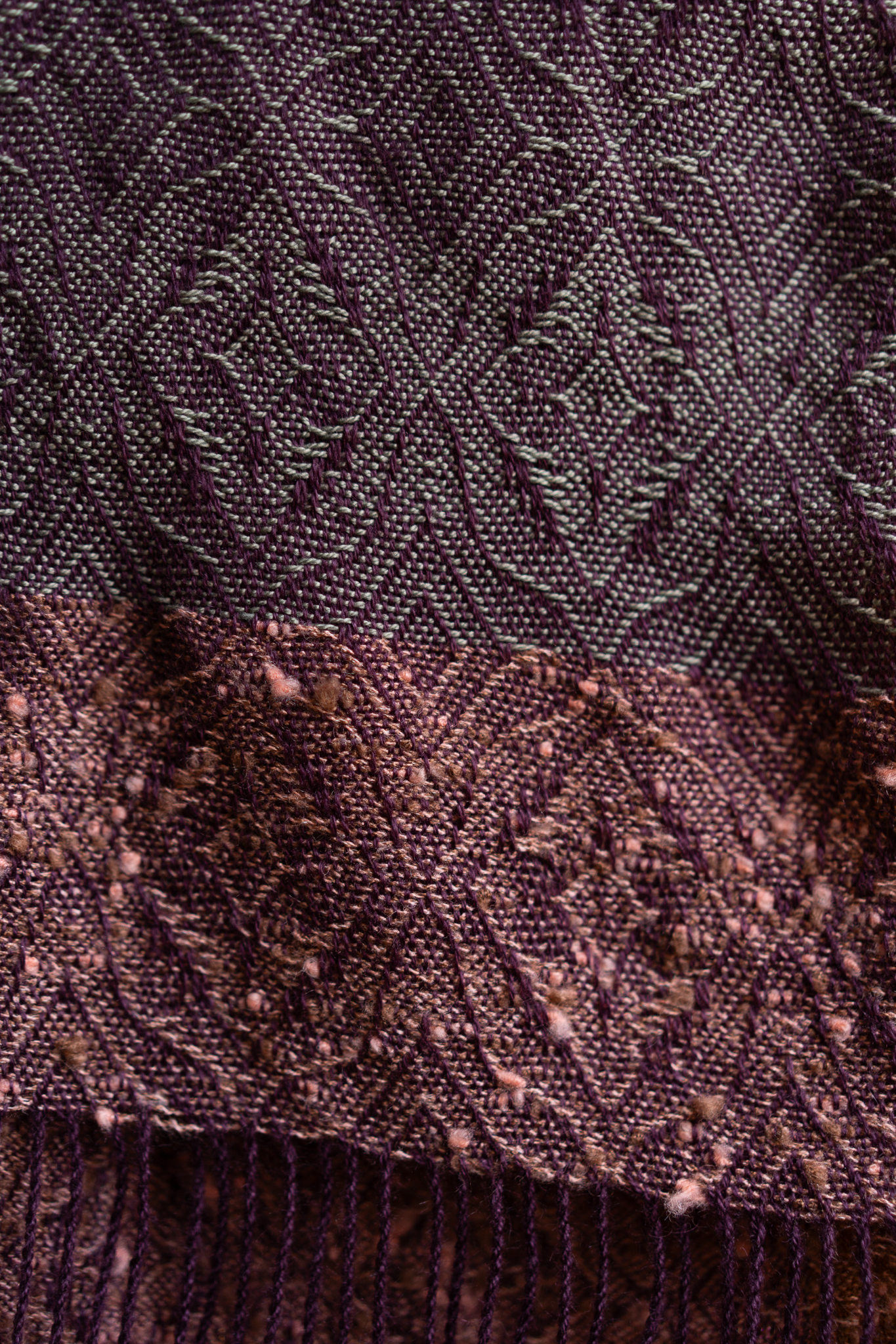 Experience the perfect combination of elegance and comfort with the ”Pterounta” scarf, a stunning accessory that effortlessly enhances any outfit. Impressively sized, 2 meters long and 70 centimeters wide, woven on an eight-beam loom, this scarf is designed to provide warmth, while remaining airy and light, due to the fine purple mohair warp. The unique combination of gray-khaki mercerized cotton and uneven salmon-colored wool for the wefts, creates a visually striking pattern, making it a versatile piece that can be shaped in many ways. The inspiration comes from the stone houses of the village of Pterounta in Western Lesvos and the colors of the stone that has been used. Whether you drape it over your shoulders for a chic look or wrap it tightly around your neck for warmth, the ”Flying” scarf is not just a fashion statement. It is a testament to quality craftsmanship and contemporary design. Add this exquisite scarf to your wardrobe and enjoy the luxurious feel and striking colors that will turn heads wherever you go.